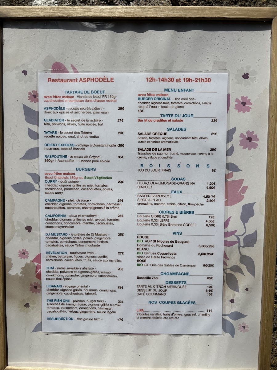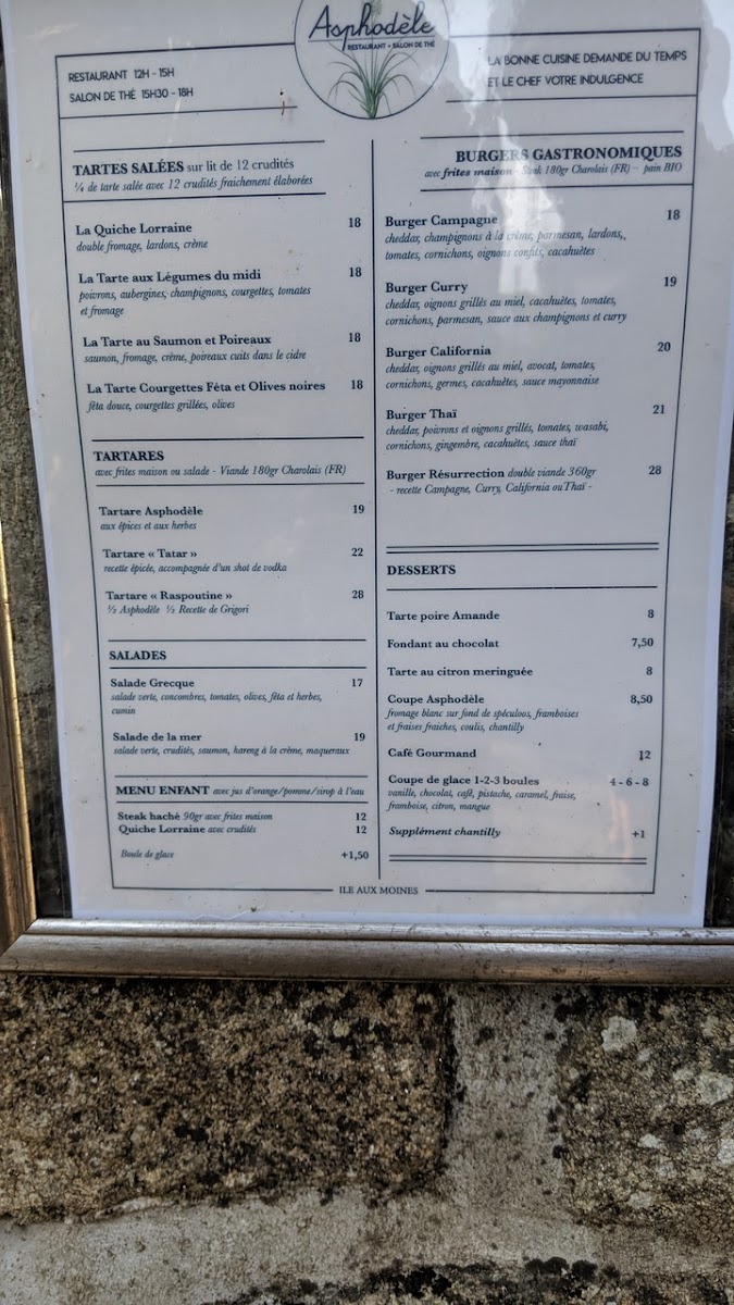 Welcome to Asphodele, a hidden gem nestled on Rue du Presbytere in the idyllic Ile-aux-Moines, France. This charming spot boasts a delightful ambiance, enveloped by a lush garden perfect for a serene dining experience. Visitors rave about the incredibly creative burgers that showcase a blend of originality and flavor. Each dish is a testament to the chef's passion for fresh, quality ingredients, elegantly presented to entice the senses.